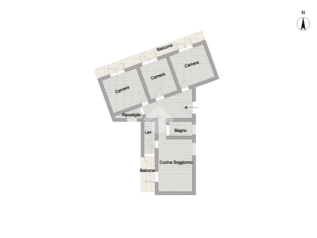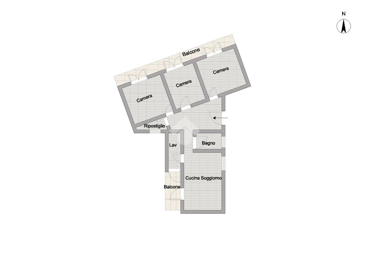 L’appartamento si trova al primo piano non ascensorato ed è composto da: Ingresso sul disimpegno dalla quale accediamo alla cucina soggiorno con uscita sul balcone, verandato con cucinino. La zona notte è composta da tre camere da letto matrimoniali, tutte con balcone sul prospetto principale. Il servizio di rappresentanza è con finestra e box doccia.